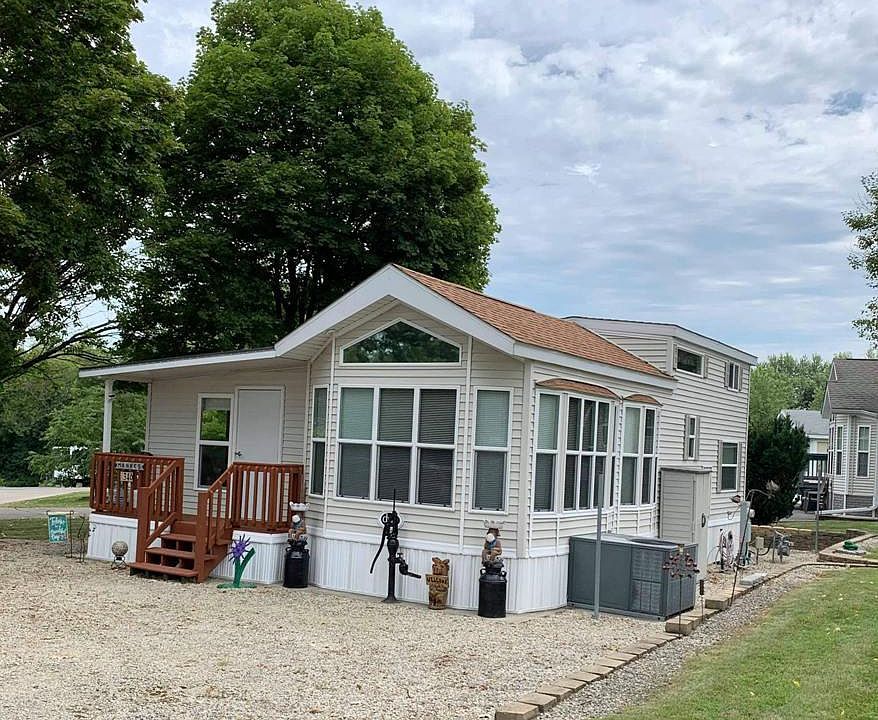 Honey stop the golf cart! Units like this don't come up very often in RRLE. This unit has 2 bedrooms with a loft & laundry hook-ups! It sits on a spacious yard with a large driveway, conveniently located near the pool and a stone's throw away from the pond. This unit has a frost-free hydrant, wrapped water lines and is already sitting on a concrete pad. You will not want to miss out on this! Sellers have gone the extra mile to use temporary braces in the add on room during the winter months for the pesky Wisconsin weather. No year round living.