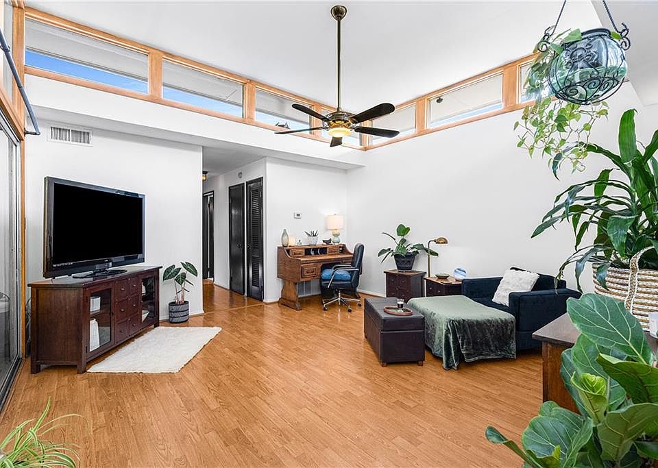Welcome to Laurel Grove - a hidden gem in the vibrant heart of Sandy Springs. Laurel Grove is an architecturally timeless community designed by Robert Greene, one of the last apprentices of Frank Lloyd Wright. This upstairs beautifully updated midcentury modern condo features a sundrenched great room with high ceilings and clerestory windows flowing into a spacious covered porch. The large kitchen is updated with stone countertops, newer refrigerator with icemaker and a brand new microwave above range. It opens to the separate dining room. The primary bedroom has ensuite bathroom and walk-in closet and the guest room is generously sized with a full bath. The condo has Pergo flooring throughout with upgraded pad for comfort. This unit uniquely looks out at lush greenery from the living room, porch and dining room creating a feeling of serenity and privacy. The condo is tucked away in the back of community with easy parking access to your assigned parking, as well as additional guest parking in front and back (accessible from your unit's back door). The AC and water heater are newer (2022). Laurel Grove is fully fenced with amenities including a swimming pool, amidst a residential neighborhood and unbeatable location. Outdoor enthusiasts will love the proximity to trails, canoeing, and biking. Enjoy the convenience of being minutes from the Chattahoochee River, City Springs, dining, shopping, entertainment options, parks, as well as public transportation and quick freeway access to 285, 400 and 75/85.
