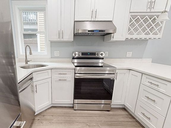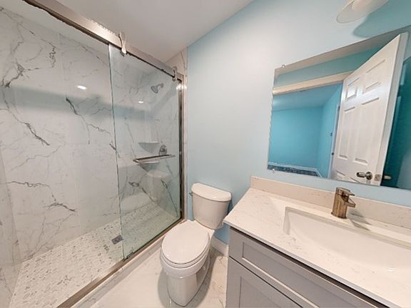 Fully renovated 2-bedroom, 2-bathroom apartment in a desirable West Newton Village. Spanning 1,075 sq ft, this unit features an open-concept layout with abundant natural light, recessed lighting and luxury vinyl plank flooring throughout. The modern kitchen is outfitted with stainless steel appliances, stone countertops and a spacious island for entertaining. Two full bathrooms provide privacy and convenience. Enjoy in-unit laundry and exceptional bonus space with basement storage. Two off-street parking spots are included one garage space and one outdoor. Gas HVAC. Don't miss your chance to live in a clean, modern space in a quiet residential area with easy access to shops, transit and parks. * * * * YouTube*com/watch?v=TcQvr9I91v0 Virtual Tour * * * my.matterport*com/show/?m=DZ2LUZy8m98 Less than 10 minutes to MBTA Commuter Rail + bus 553, 554 Available JULY-AUG First, Security, Broker Fee