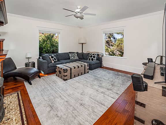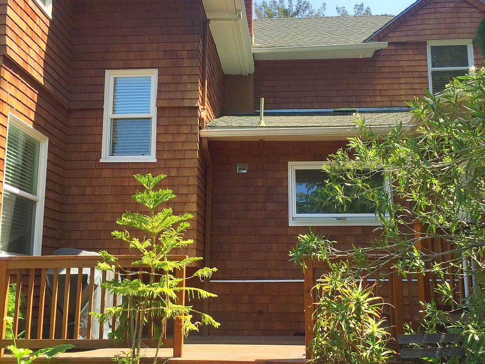 Rarely available exquisite gated estate on Christmas Tree Hill. Historic Victorian on 1 acre w/ Bay views. Opens onto lawns, gardens, mature redwoods & wildlife. Entire 950 square foot apartment has high ceilings, crown molding, & solid oak floors (except bathroom). Spacious living room has original, historic fireplace. One very large bedroom w/ bay views & 3 closets (2 walk-in). Large exquisitely tiled bathroom (marble and subway tile) with soaking tub & shower. Delightful, light & open space, w/double pane windows in all 4 directions. Kitchen has Caesarstone counters & all stainless-steel appliances, including dishwasher and microwave, a pantry & seating area. Bright, spacious windows on all 4 sides, no one lives above or below. One door leads out to your large, private redwood deck & the other door opens onto a large shared porch, both overlooking lawns, gardens, mature redwoods and wildlife. Included are two designated parking spots, a laundry room, and a large, walk in storage unit. It is a special place for serenity and calm while close to world class hiking and bike trails, and local eateries, while just minutes from San Francisco. 2 car parking (2 small cars or 1 large). Tenant pays landlord directly for pge, water and garbage. $40 application fee. No smoking, no pets.