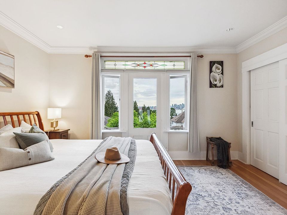 Welcome to the “Harrison House” (circa 1912)—a rare chance to own a piece of Vancouver’s architectural legacy. Listed on the City’s Heritage Inventory, this 3,571 sq ft stunning home blends timeless charm with modern upgrades. Featuring stained glass, fir floors, a grand foyer, original wainscotting & an open staircase. Substantially renovated in 2016 with a luxurious design that feels both modern & traditional. Enjoy peekaboo views of the water & downtown from the spacious front verandah. Four bedrooms up, with additional space below for flexible living or a guest suite. Workshop + unfinished Attic space. 1 car detached garage at rear with. Quiet street in a central, family-friendly, neighbourhood. Unique strata lot with a separately owned infill in back.