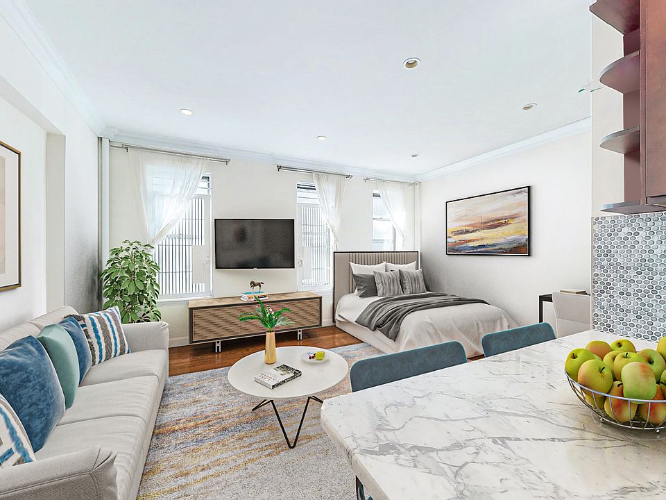 This charming unit at 346 East 76th Street, offers a functional layout with ample natural light, creating a bright and airy feel. You can fit a full sized bed and loveseat easily.