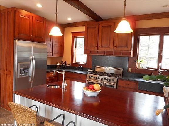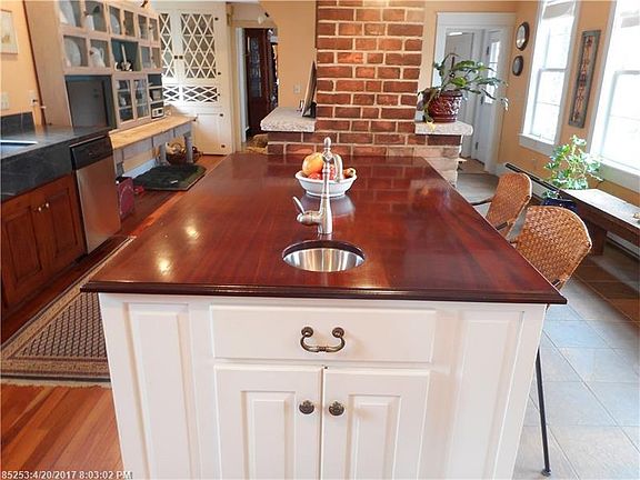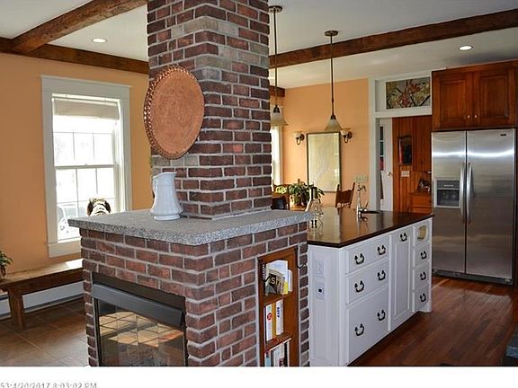 Historic 1840's timber frame home w/ gorgeous period trim & detail. Inspiring chef's kitchen features 5 burner gas stove, soap stone & mahogany counters, antique beadboard pantry, high ceilings & exposed beams. Serve amazing dinners in the large dining room under the Schonbek chandelier or by the fireplace in the enclosed glass porch overlooking mature perennial gardens. Later relax by the Franklyn in your dual parlor. Other features; custom bathrm, clawfoot tub, extra back lot & elevated Kennebec river views!