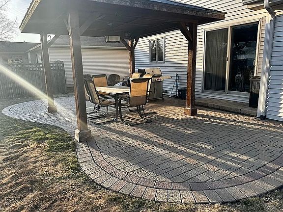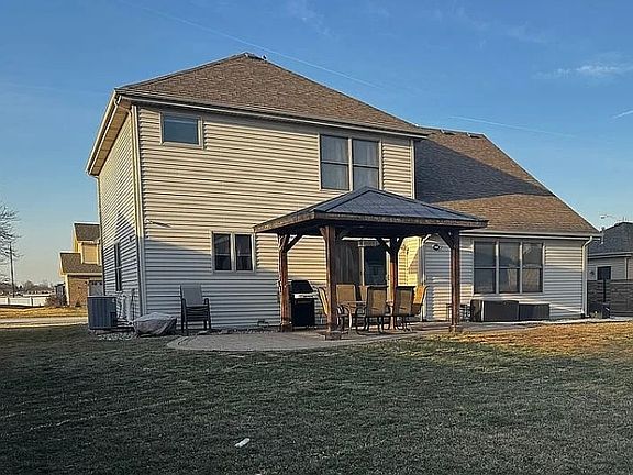 Welcome to Highpoint Subdivision! This beautifully appointed 4-bedroom, 2.5-bath home features a spacious 3-car garage with plenty of storage space. As you enter, you're greeted by a two-story foyer and open floor plan with cathedral ceilings and hardwood flooring, creating an inviting atmosphere. Gather around the gorgeous fireplace in the living area, or enjoy culinary delights in the expansive kitchen, complete with Amish wood cabinetry, granite countertops, breakfast bar and stainless steel appliances. Convenience is key with a mud room off the garage and a laundry room with utility sink and cabinetry. Retreat to the master en-suite featuring his & her closets, a whirlpool tub, separate shower and double sinks. The full basement has plumbing roughed in and is full of possibilities. Step outside where you can relax on the stone paver patio underneath the charming pergola-perfect for summer gatherings. Additional highlights: MyQ garage door openers, a smart thermostat, select smart light switches, outdoor camera security system and basketball hoop. Schedule your showing today!