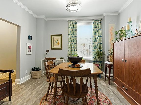Charming detached century home nestled in the highly sought-after Locke ST neighbourhood. Perfectly positioned just steps from the vibrant shops, cafes, and restaurants of Locke Street South, this property is ideal for buyers & investors alike . Open concept main floor offers a bright living and dining room, a spacious eat-in kitchen, and convenient main-floor laundry. Upstairs, you'll find the primary bedroom with a walk-in closet, a second bedroom and full bath. Enjoy the privacy of your side yard, perfect for morning coffee or evening unwinding. Commuting is a breeze, with the GO train station just a short walk away and Highway 403 reachable in under five minutes. Driveway parking adds a valuable layer of convenience to this fantastic location. Updated gas furnace, 100 amp electrical panel and copper wiring. Don't miss this opportunity to own a detached home in one of Hamilton's most desirable areas. Closing date and vacant possession available after December 1, 2025