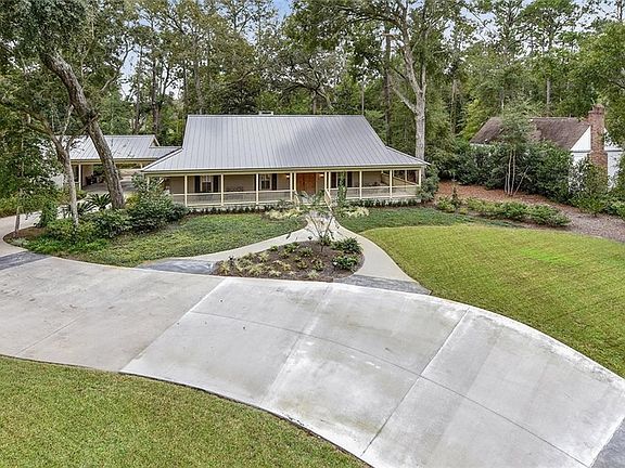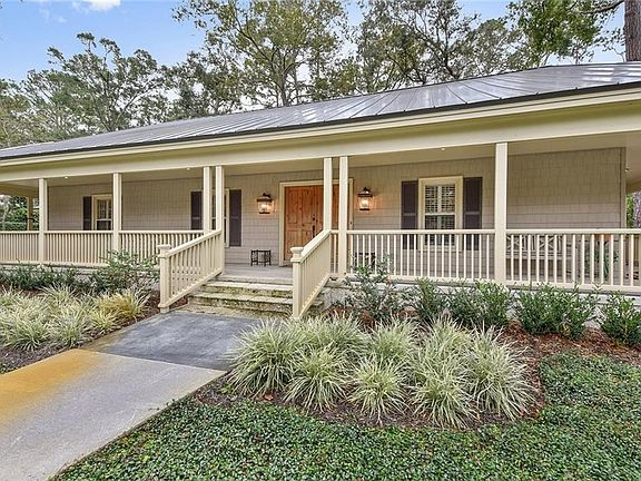 Custom Built home, never been on the market. Looks like this home came right out of Southern Living. Large wrap around porch, Heart pine custom front doors, Metal roof. Wide entry leading to living area with coffered ceilings, cozy fireplace, heart pine floors. Large family room on the rear of the home with doors leading to the expansive lawn in the rear. Split floor plan with master and one guest bedroom down, upstairs 2 bedrooms, a bath and a sitting room. Study off the entry hall. Lot is over an acre! Plenty of room for a pool and a pool house.