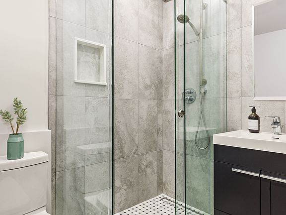 The renovated kitchen offers full size stainless steel appliances, sleek cabinetry, and great counter space. The oversized bathroom has been updated with a glass walk-in shower and contemporary finishes. The serene queen size bedroom enjoys incredible natural light and lovely neighborhood views.