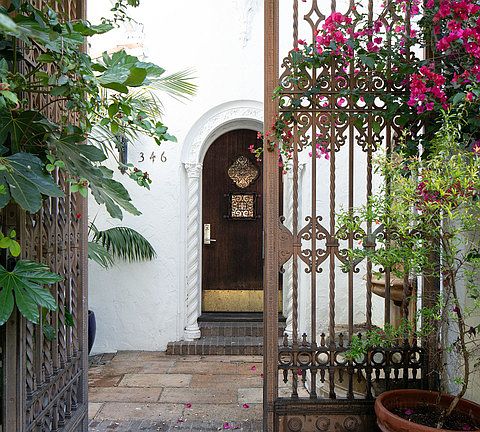 Legendary home in prime Hancock Park. An iconic celebrity estate rich in Hollywood history. This gated historic 1919 Spanish home has been re envisioned w Moroccan influences, artifacts, and original details throughout. This 4 bed/6 bath Windsor Square stunner boasts a huge private backyard, sun drenched pool, 3 period fireplaces, dark hardwood floors, romantic courtyard, & oversized balconies. Detached theater, office/playroom, and guest suite above. Expansive recently remodeled eat-in kitchen satisfies today's standards yet maintains the home's authentic integrity. Great walking block distance to Larchmont Village. Superb family home with unparalleled style. A rare offering now available for the next lucky caretaker.
