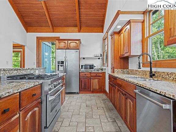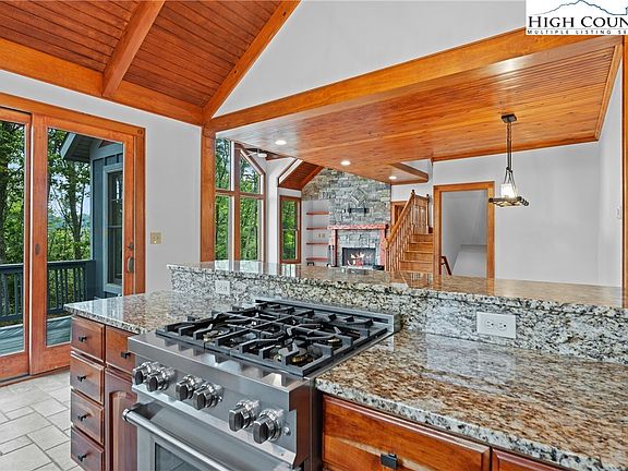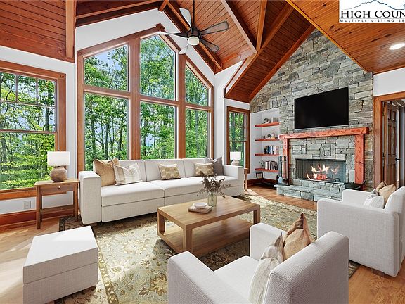 "Discover this extraordinary mountain sanctuary, meticulously maintained and presented in like-new condition, perched on 1.7 private acres with a gorgeous long-range vista of the majestic Blue Ridge Mountains. This exquisite, custom-built home is designed for luxurious mountain living, boasting a light-filled open concept floor plan where dramatic soaring tongue-and-groove cathedral ceilings and abundant, tall glass doors and windows allow the space to fill with gorgeous natural light. The centerpiece is a magnificent floor-to-ceiling stone wood-burning fireplace with beautiful stonework. The chef’s kitchen is a culinary delight, featuring high-end Granite counters, a gas range, and stainless steel appliances, opening directly onto dual decks—a really great spot for grilling and outdoor dining. The home features three spacious bedrooms and four full baths, including a convenient main-level Primary Suite that offers a private deck, a unique recessed entertainment nook, and a spa-like bath with a walk-in glass-and-tile shower and granite double vanity. A second main-level bedroom offers flexibility as a guest room or office. The generous upper-level suite provides a private retreat with beautiful vaulted tongue and groove ceilings and a full bath, easily serving as a second primary option. Fantastic outdoor areas, including multiple decks and usable flat yard space with a secluded firepit area, maximize enjoyment of the tranquil setting. You'll find high-quality work and Granite counters throughout, with beautiful cabinetry and fabulous light fixtures, inside and out. Modern convenience is secured by a new architectural shingle roof, fiber optic high-speed Internet, a Verizon cellular extender, and a highly efficient dual-fuel HVAC system. This wonderful property is in absolutely pristine, turn-key condition and ready to enjoy immediately. Every detail has been addressed, making this perfectly maintained home a flawless example of luxury mountain living at its absolute finest—a truly breathtaking mountain haven awaiting its new owner."