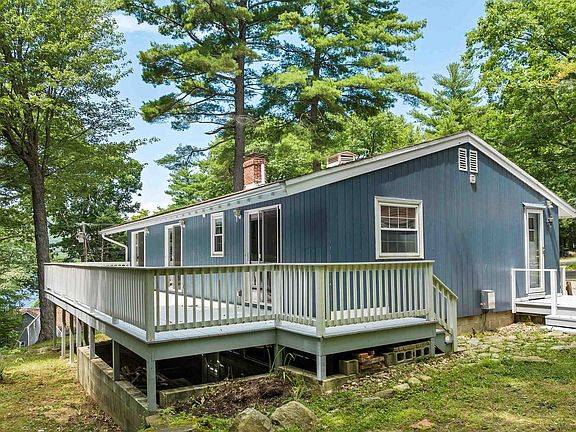 Beach Access Ranch with filtered lake and mountain views of Winnipesaukee and Mount Major. The home is situated on a mostly level plateau portion of the lot with level access from Trask Side Drive to the detached 26'7 x 23'2 garage. This 7-room home features a remodeled Kitchen with new appliances. The spacious 44'7 x 9'10 back deck features sliding door access to both main level bedrooms and to the family room with its vaulted ceiling. The lower basement level has a walk-out access under the deck as well as a finished 23'2 x 8'11 bonus room at the west end of the cellar. There is an open area in the back yard that is surrounded by forestland. This property has deeded beach rights only to a private beach on the Derby Side of Black Point that overlooks Chestnut Cove and Winnipesaukee looking north towards Wolfeboro and the Ossipee Range including Mount Shaw. This home was pre-inspected; and deficiencies have been corrected. A summary inspection report is available. Sign on property!