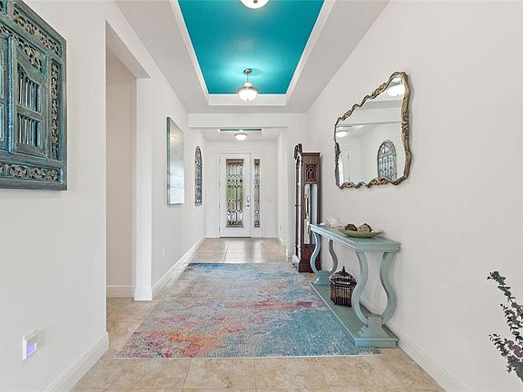 Discover luxury living in Solivita at 346 Treviso Drive with this rarely available MARSALA model, featuring a PRIVATE MULTI-GEN SUITE and sweeping WATER & GOLF VIEWS on a spacious pie-shaped lot. This unique home provides the ultimate private WORK-FROM-HOME option, in-law arrangement, or spacious retreat for family and friends! Find breathtaking views in every direction and the charming Solivita village, a short walk away. Step inside a large welcoming foyer and find thoughtful upgrades throughout; from a leaded glass entry door to 8-foot interior doors and custom trim work; every detail meticulously considered. The great room impresses with twin 12’ triple sliders with views to the water, creating a seamless indoor-outdoor experience into a large lanai featuring travertine flooring and recessed lighting. The home is open plan, the kitchen displays upgraded cabinetry, premium hardware, a striking backsplash, and a custom glass pantry entry—a perfect mix of style and practicality. Retreat to the deluxe over-sized owner’s suite, and a spa-inspired bathroom including a step-in hydro tub and separate shower, dual sinks, a water closet, and a spacious walk-in closet that has a convenient with direct access to the well-designed laundry room. The rest of the main home includes a well-sized guest bedroom with walk-in closet, a full bath with a transom window, and an adjacent double-door den/flex space with large windows. The STANDOUT FEATURE that makes this luxurious home unique is the fully functional private suite with southern exposure, with separate portico entry, a cozy living room, a galley-style kitchenette, well-appointed bath complete with a shower, double vanity sink, walk-in closet, and bedroom. This separate space offers comfort and privacy, making it perfect for hosting family or friends. Additional practical luxuries include dual AC controllers, a Propane Tankless Hot-Water Heater switchable to the standard electric hot water heater, and a Pentair whole-house cartridge water filtration system, a hardwired security system, a handy drop zone at the garage entry, and propane Automatic Whole-House Generator for peace of mind. The spacious 3-car garage features a new epoxy coating with decorative chips, Saf-T-Racking for storage. Other items upgrade exterior landscaping with border curbing and extensive nighttime lighting, full tile roof, and fresh exterior paint, rounding out this amazing package. Don’t let the opportunity slip by to own this incredible property; schedule your private tour of 346 Treviso today and start living your Florida dream. **PLEASE SEE THE 3D MATTERPORT TOUR** Make the award-winning Active 55+ Community of Solivita your new home today. Featuring 14 Pools, 2 Championship 18 Hole Golf Courses, Tennis, Pickleball, basketball, softball, over 240 clubs, spa services, state-of-the-art exercise facilities on 4,200 acres of conservation. Take your golf cart for a spin to dine and share a cocktail with friends; or to enjoy the many activities that Solivita COMMUNITY enjoys. The HOA includes landscaping, irrigation AND high-speed fiber TV and Internet. HCA Florida Poinciana Hospital is directly across the street along with the new Poinciana Lakes Plaza, with lots of shopping and restaurants.