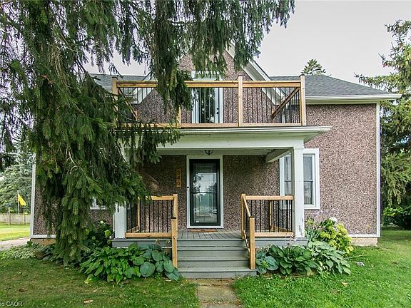 This beautifully restored Farmhouse seamlessly blends timeless character with modern upgrades. Set well off the road, on a generous 2/3 acre lot, the property offers privacy, space & incredible potential - all just minutes from amenities & 401 highway access. The heart of the home is the skillfully renovated kitchen, showcasing rich indigo cabinetry, maple counter tops, new SS appliances, floating shelves, and breakfast bar. With a raised sink and vintage tile, the spacious main floor powder room complements the farmhouse feel. The main living & dining areas showcase classic trim work, large new windows & garden doors that lead to the remodeled covered porch – perfect for enjoying tranquil views of mature trees, lilacs, raspberry & mulberry bushes alongside frequent visits from birds & local wildlife. Upstairs, the expansive primary suite offers flexibility – keep it as an impressive retreat, add a nursery or creative space, or easily convert the home back into a 3 bedroom layout. The breathtaking, spa-inspired bathroom features a freestanding soaker tub, large open walk-in shower, private water closet & ample storage. A conveniently located second floor laundry room comes complete with new appliances (a 2nd set in bsmt!) & a tub/shower combo for everyday conveniences. Step out onto the upper balcony to enjoy views of the park & nearby trails. Hardwood floors throughout and lighting fixtures thoughtfully chosen to complement the rustic charm. Freshly painted from trim to ceiling, this home is move-in ready! The expansive lot offers room to dream – consider adding a pool, workshop, or exploring the possibility of a secondary dwelling unit, with ample parking for 4+ vehicles & a detached garage. Ideally located across from the community center (with pool!) and no back neighbours! This is more than a home – it’s a lifestyle! Come experience the perfect blend of City conveniences and country charm. Don’t miss the chance to make it yours!