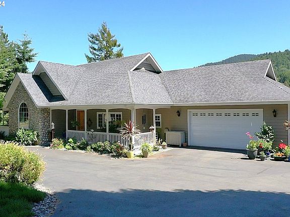 Outstanding quality and a spectacular custom home nestled 4 miles up the Winchuck river, and only 10 minutes to town. This warm and sunny location offers coastal country living with all the amenities and out of the fog. Boasting a colossal gourmet kitchen w/40' Italian 6 burner Dual-Fuel range with two ovens, an eat-at island, trash compactor, garden window, and tons of storage. One-of-a-kind 5 bedroom, 4.5 bath estate is like Disney Land for the entire family. With three Master En Suites and two additional bedrooms, there's room for everyone. Vaulted & tall 9' ceilings with custom trim and doors throughout. Private patios, decks, and covered porches all around. Downstairs you'll find a Professional Home Theatre with sound system, a 96" screen that comes complete with 6 leather recliners and elevated seating. A second Great Room that's 43' X 26' with large windows capturing all the natural light, a wine storage room with mini fridge, and additional flex area that's pre-plumed for a second kitchen & laundry should anyone want to add it. Outside you have your own personal putting green with tee box, and a Marquis 17' Aquatic swim spa with Covana electric cover. Salmon & Steelhead fishing from your back yard, fantastic garden w/raised planters, mature blueberry patch, a chicken coup, three exterior sheds with lights and power to each, and plenty of room to roam. Close to town for shopping, restaurants, beaches, parks, art galleries, and more. Just a short drive east is the National Forestry access. Custom Built by Jim Barnes Construction. A pure labor of love in the quality and care that went into this build, and it shows in every facet. This home is comfortable, quiet, and energy efficient. There's over 200 yards of concrete in the foundation and 12" thick walls, finished with fiber cement siding, a 50-year architectural roof, top of the line septic system and it has a remarkable 70 GPM well. Broker is related to seller.