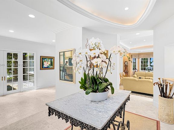 Nestled within the prestigious gated community of The Moorings, this 8,811 SF residence offers a harmonious blend of classic elegance and everyday comfort. The 5-bedroom, 5-bathroom plus 2 half-bath estate is surrounded by rich landscaping, providing a sense of privacy and tranquility. Inside, the home features soaring ceilings, exquisite architectural millwork, and high-impact French doors that fill the interiors with natural light. Formal living and dining areas, a stately marble fireplace, an office, elevator, and staff quarters create a refined yet functional layout. Step outdoors to a resort-style setting complete with a shimmering pool, multiple terraces for alfresco dining, a fully equipped summer kitchen, and a peaceful courtyard fountain. Additional highlights include a 2.5-car garage with space for a sports car, a generator, and a new roof—offering both sophistication and practicality in one exceptional Coconut Grove estate. The adjacent 17,820 sq ft lot is also available for purchase (MLS A11924027), creating a rare opportunity to assemble a combined homesite within one of Coconut Grove’s most coveted enclaves.
