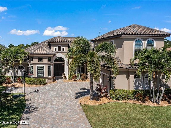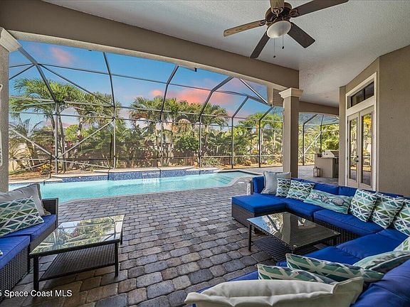 Discover this stunning custom-built pool home in the prestigious gated Colfax Landing community of West Viera. This expansive residence features 6 bedrooms (or 4 bedrooms plus an office and bonus room) and five bathrooms, with a 3 car garage- ideal for family living. Bask in the elegance of tray ceilings soaring up to 14 ft in areas, crown molding, 8 foot doors, plantation shutters, and an abundance of sliders and French doors leading to a tropical lanai that floods the interior with natural light. The gourmet kitchen boasts custom cabinetry, granite countertops, soft-close drawers, under-cabinet lighting, SS appliances, a 5 burner gas range and a spacious pantry. Step outside to the private screened-in heated pool with a tranquil water feature, covered seating area, dining area and a summer kitchen perfect for family BBQS. Located in a top-rated school zone with community amenities nearby, this home offers both luxury and convenience, just a 30 minute drive to the beach and close to shopping, restaurants, and I-95 for your commute or a 1 hour ride to the international airport in Orlando and Disney World! Did I mention Port Canaveral is a short 35 minute drive as well? Make your viewing appointment today!