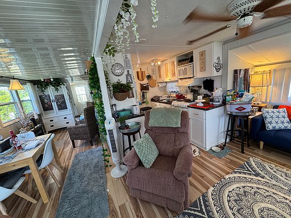 BEAUTIFUL property! This is in a 55+ older community. Great cozy mobile home that is fully furnished with a Roku TV for use in the living room, dining room, a Roku TV in the bedroom, and a full washer and dryer included. Some pots and pans supplied. The best thing is there is a Lainai in the back that is less than two years old enclosed that keeps the flying bugs out and a fully functioning Roku TV for your nights just hanging out with friends and family! A pet less than 35 pounds is authorized with a pet deposit. Utilities (electric and internet) are Renter's responsibility. One Year lease only and should be 55+. All residents in residence is required to undergo a park background check. Most furniture in Lainai will be removed as it belongs to owners. The $1300 includes the lot rent currently charged - no need to pay an extra lot fee. Ready for move in December 2025. If you have a pet, the limit is 35 lbs and cannot be a restricted breed with a $400 non-refundable pet deposit. Renter is responsible for repairs up to $150. Lockouts is Renter's responsibility.