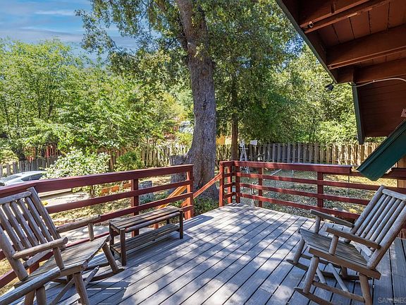 Nestled in the serene and picturesque community of Lake Cuyamaca in Julian, CA, this charming A-frame cabin offers a perfect blend of rustic charm and cozy comfort. Spanning 1,366 square feet, this delightful home features 3 bedrooms, a loft, and 2 and one-and-a-half bathrooms. The wormwood paneling enhances the cabin's inviting atmosphere, complemented by an open-concept living space that ensures a seamless flow between the living, dining, and kitchen areas. Large windows flood the space with natural light, creating a warm ambiance throughout. The property is dotted with majestic Oaks, Cedar Pine trees, and thriving grapevines, adding to the enchanting outdoor experience. Step outside onto the spacious deck to relax and unwind while enjoying the stunning natural surroundings. Located in the idyllic Lake Cuyamaca area, this cabin offers more than just a home; it provides a lifestyle. Known for its scenic beauty and outdoor recreation, Lake Cuyamaca is a haven for nature lovers, with opportunities for hiking, fishing, boating, and birdwatching just moments from your doorstep. The charming town of Julian, famous for its apple pies and historic Main Street, is a short drive away, offering quaint shops, delightful restaurants, and a friendly community vibe. Don't miss this opportunity to own a piece of paradise in Lake Cuyamaca.