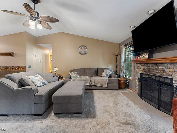 Welcome to 3461 Donegal Dr NE, Canton! Step onto the charming front porch, the perfect spot for morning coffee or relaxing afternoons. Inside, the open floor plan creates a welcoming flow, starting with a cozy living room featuring a fireplace and soft carpeting—ideal for family gatherings or quiet evenings at home. The dining area, with direct access to the back deck, is designed for both casual meals and special celebrations. The kitchen offers abundant cabinet space, modern lighting, and stainless steel appliances, making meal prep a joy. This home includes two spacious bedrooms, including a primary suite with its own full bathroom for comfort and privacy, plus another well-sized bathroom to serve family and guests. The lower level features a laundry area and offers the potential to be finished into extra living space—perfect for a playroom, recreation area, or exercise room. Outdoors, enjoy a large deck overlooking a generous backyard, complete with a storage shed. Whether hosting summer barbecues, gardening, or simply letting the kids play, this yard offers endless opportunities for family fun. Don’t miss out on this inviting home that blends comfort, function, and room to grow!