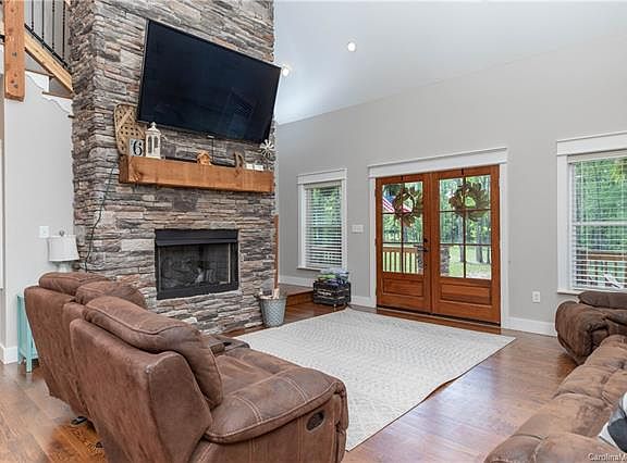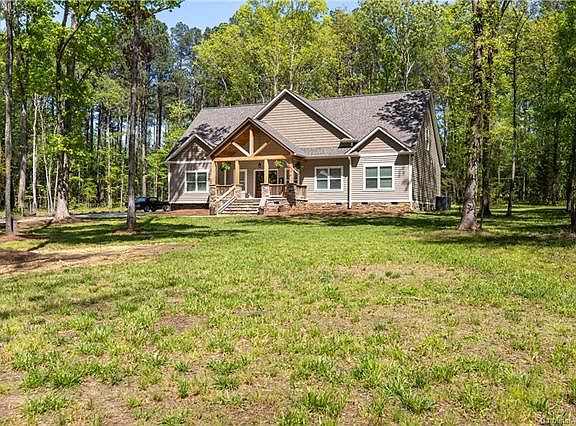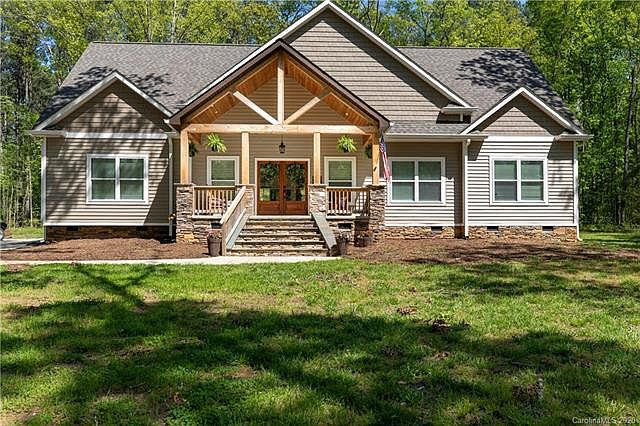 Plenty of privacy at this beautiful craftsman style home that is surrounded by large hardwoods! The home sits back off the road with like-in-kind properties in the area. The beautiful 3/4 glass double front door greets guests as they approach the large covered front porch with cedar beams and tongue and groove cedar ceiling.The interior features a split-bedroom open floor-plan that has beautiful views and plenty of natural light, a 2-story fireplace with gas logs, hardwood flooring throughout main living area and the master bedroom, beautiful light fixtures, open concept kitchen w/a large island & breakfast bar, walk-in pantry and an office with great views. The laundry room is located off the dining area and has a side entrance leading to the concrete driveway pad. The 2nd level features a large bonus/flex room, loft, 3rd bath and over-sized bedroom. The driveway winds through mature hardwoods and sets the setting for this beautiful home surrounded by nature! Easy access to amenities!
