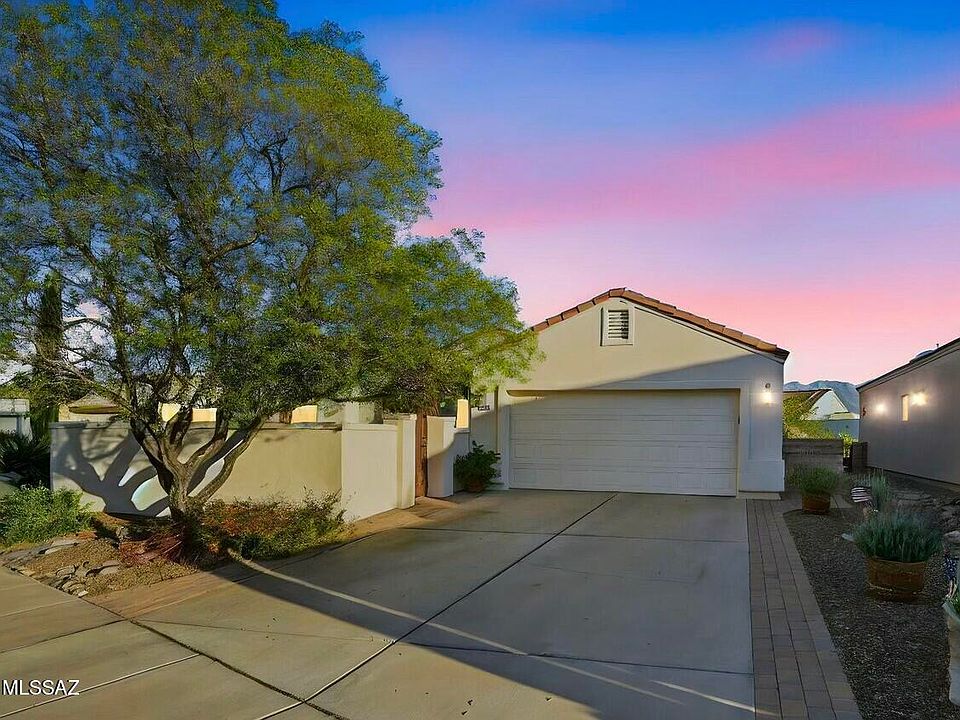 This beautiful home is located in the gated Greens at Santa Rita Springs. Ideally situated near golf courses, shopping, recreation centers, and grocery stores. Impeccably maintained, it boasts numerous updates and improvements, including fresh interior paint, new irrigation, professional landscaping, and a pergola with a fan and lights, among other thoughtful touches. The front courtyard provides a serene retreat with a fountain and privacy wall, perfect for relaxing or entertaining. Inside, the home feels warm and inviting, featuring vaulted ceilings, a double-sided gas fireplace serving both the formal and informal living areas, and large windows that fill the space with natural light. The chef's kitchen is a dream, with painted soft-close cabinets, new granite countertops, a custom island, a stainless-steel farm sink, and a Samsung induction/convection range and oven. Elegant new Silhouette window coverings and draperies complement the gorgeous tile floors throughout the home. The bathrooms have been updated with new glass shower doors and partitions, cultured marble countertops, and heavy-duty toilets, creating a spa-like experience. A screened-in back porch, expansive pavered areas, and mature landscaping provide the perfect setting to create your own private backyard oasis. This is truly a once-in-a-lifetime opportunity to enjoy comfort, style, and the active Arizona lifestyle.