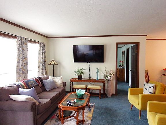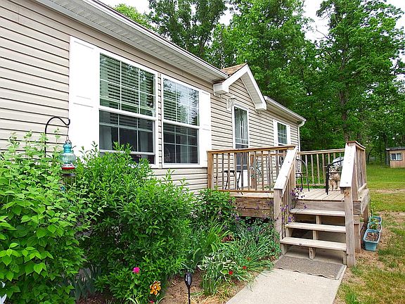 Nestled on 5 mostly wooded acres, this beautifully maintained 3-bedroom, 2-bath manufactured home offers peace, privacy, and plenty of modern updates. Built in 2015, this 10-year-old home features a remodeled kitchen perfect for entertaining, a newer central air system, and a convenient generator hook-up for added peace of mind. The spacious 2.5-car attached garage provides ample room for vehicles, tools, and toys.