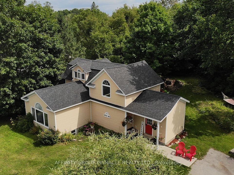 Looking for that one of a kind home with rustic charm, modern finishes + a shop for all your toys and space for a home office? Look no further! 3462Monck Road is for you. Sitting on close to a half acre private lot in the quaint community of Norland in the Kawartha lakes. Large entry leads to open concept design with stunning wooden interior finishes. Spacious custom knotty pine kitchen with large island/breakfast bar overlooking charming sunken living room. Main floor laundry and bathroom with unique clawfoot tub and tiled shower. Upstairs features an open aired wooden beam design with spacious master bedroom. The finished lower level has tons of space for the family with two bedrooms + den, recreation room, washroom and utility room with more space for storage. Recent updates include propane furnace (2020), a/c unit (2020), hot water tank (2025) and roof (2022). Paved driveway, private backyard with hot tub. This beautiful home and property are sure to impress
