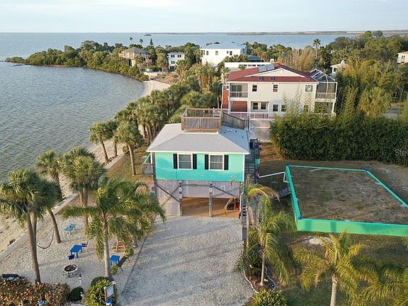 Swim with dolphins in your own back yard at your private beach paradise. Breath in the amazing sunset every day from the rooftop deck / widows walk. This is a spectacular one-of-a-kind home and very RARE opportunity to own your own private beach on the Gulf of Mexico with over 90' of waterfront and its own concrete seawall. Vast amount of sandy beach side seating while entertaining under the beautiful swaying Queen Palms. With this property consisting of two lots platted as one now, you will have abundant space and parking underneath the house and the oversized driveway will be sure to accommodate. This 2-bedroom 1.5 bath will be an extreme surprise at how roomy it feels when you walk in and are drawn straight to the spectacular water view of the Gulf of Mexico from nearly every room. You are sure to enjoy the small island life, where you will ride your bike, privately soak up the sun and walk to the Alfred McKethan Pine Island Park to enjoy lunch at the parks Willy's Tropical Breeze Café. You have nothing to worry about with the newer roof, Ac , water softener as well as new doors and windows. PLEASE adhere to the following guidelines at sellers' request. Showings request must accompanied and present prequalification, preapproval and or proof of funds for all showing's requests.