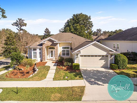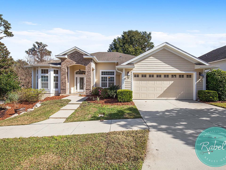 Call today to preview so you don't miss your opportunity to own this immaculate home situated on a private corner lot in the coveted SW pool community of Garison Way! The two way split plan offers 3 bedrooms, 2 baths plus a study/exercise room with french door entry. Features of the home include maple cabinets, quartz counter tops, stainless steel appliances, gas log fireplace in great room, tankless water heater, irrigation system with reclaimed water, and 30 year architectural shingles. Additional features include 10 ft ceilings throughout, tray ceilings in great room and master bedroom, extensive trim and crown molding, ceramic tile floors in main living areas, and new vinyl plank floors in all bedrooms. The luxury master bedroom and bath includes two large walk-in closets, granite countertops, two individual vanities, jetted tub and walk-in shower. Large screened lanai to enjoy outdoor entertaining. Located in a convenient location within walking distance to the neighborhood swimming pool, Kanapaha Veteran's Memorial Park and a short drive to University of Florida, Shands, VA and North Florida Regional Hospitals.