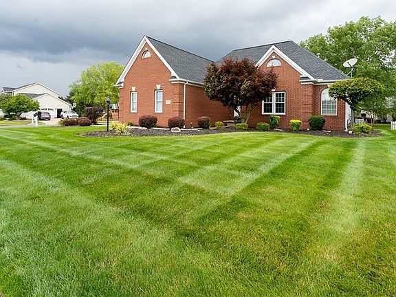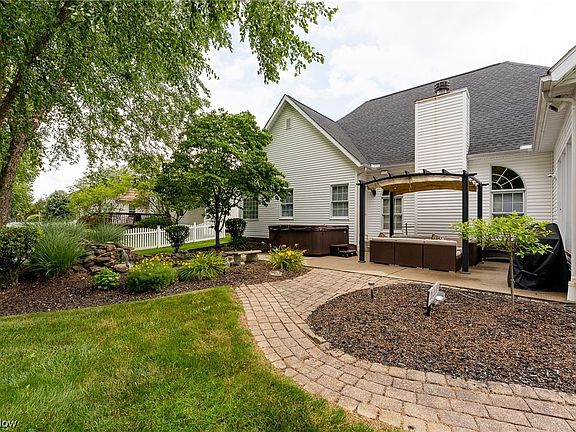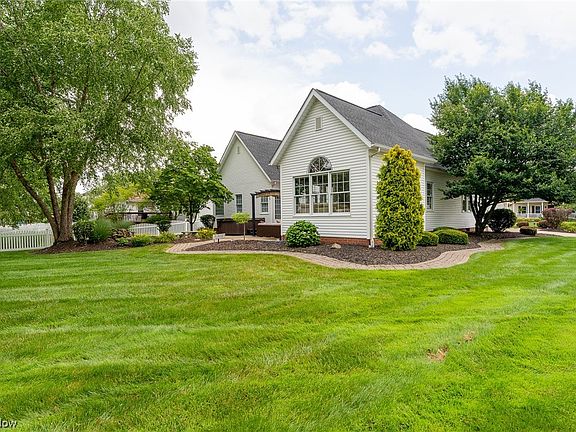 WELCOME HOME! This stunning one owner, custom-built Schumacher brick ranch in North Canton Schools is an absolute must-see on a spacious corner lot in Shepherds Gate allotment! You will be wowed with the huge great room with 22-foot vaulted ceilings, tiled fireplace, and a ton of natural light! The bright open concept eat-in kitchen with new granite countertops and bar seating flows into the dining room to give you plenty of space while entertaining with friends and family! The calming four-seasons sunroom has 16-foot ceilings and gives you the perfect amount of sunlight, especially in the colder Ohio months! Outside, you can enjoy the extended patio with breathtaking views of the evening landscape lighting while you are soaking in your relaxing hot tub, listening to the sound of the backyard waterfall with a vibrant-colored koi pond! The big master bedroom features custom 10-foot tray ceilings with crown molding, a good-sized walk-in closet, and a master en suite with double sinks and