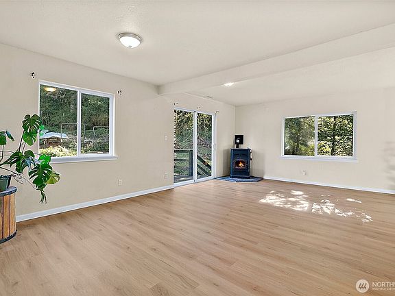 Charming 3 bed/2 bath home on nearly one acre in peaceful Ravensdale. Enjoy a light-filled interior with new flooring, neutral paint, and a cozy stove. The open living area features large windows and a sliding glass door that leads to a deck with forest views. Upstairs, the rooms offer versatile spaces with sloped ceilings—perfect for bedrooms, an office, or a creative area. Outside, the large yard is surrounded by mature trees, providing privacy and ample space for gardening, playing, or relaxing. Just minutes from Maple Valley, Covington, and Black Diamond, this home offers the best of quiet country living with easy access to town. A unique opportunity to own a serene property in a beautiful PNW setting!