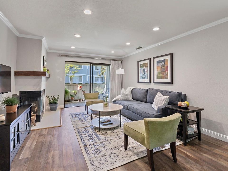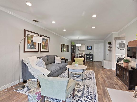 This gorgeous condo consists of 2 bedrooms, 2 full baths, which includes the primary bedroom with a useful alcove & its own private bath. Updated kitchen w/luxurious quartz countertops, stylish tile backsplash, & freshly painted cabinets. Easy to care for luxury vinyl plank flooring in kitchen & living areas as well as recessed lighting. Beautiful crown molding throughout. Favorable living room/dining room combination. Cozy fireplace with impressive updated tile, & convenient in-unit laundry with full size stackable washer & dryer. Cute private patio with a relaxing view of the complex greenbelt. Finishing out this fantastic home is a 1 car garage with ample attic storage, & 1 additional outside parking space. The complex amenities include a refreshing pool & spa, and park-like grassy areas. The Crossings is across the street from Frank Fisher Park, playgrounds, tennis courts, & close to Ardenwood's coveted Forest Park Elementary school. American High School "is far above the state average in key measures of college & career readiness" according to Great Schools. Convenient to highway 880, 84/Dumbarton Bridge & Union City BART station.