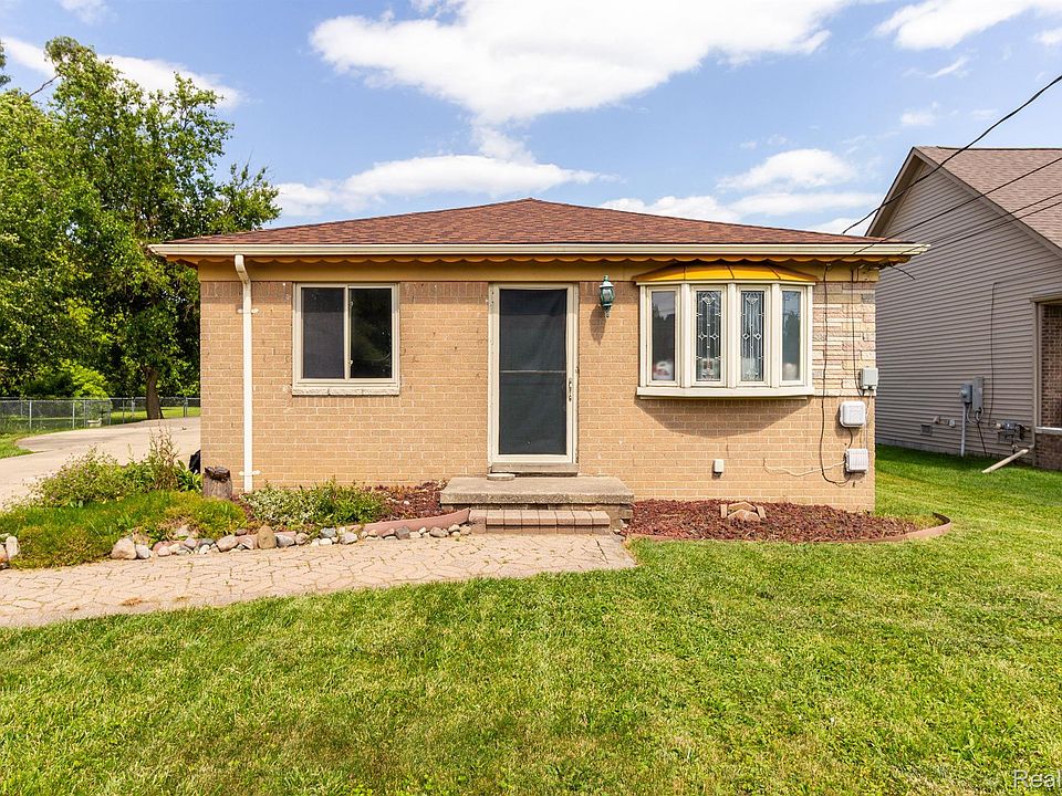 **Open house, Sunday 6/16/24, 1-4 pm** Sharp move in ready ranch home offering keys at closing! Open concept floor plan! Spacious living rm w/bump out bay window, recessed lighting and real hardwood flooring that continues throughout! Remodeled island kitchen w/premium white cabinets, granite tops, farm sink & new stainless appliances that stay! 3 generous bedrooms! Main bath finished in ceramic tile! Den or possible 4th bedroom with door wall to the HUGE back yard, deck & patio! New tear off roof in '22, vinyl windows, central air, extra deep basment is perfect for finishing and includes the washer & dryer! Perfect set up for somone that wants to build a large garage or pole barn, or that needs space to store toys or equipment! Huge driveway with tons of room to park!