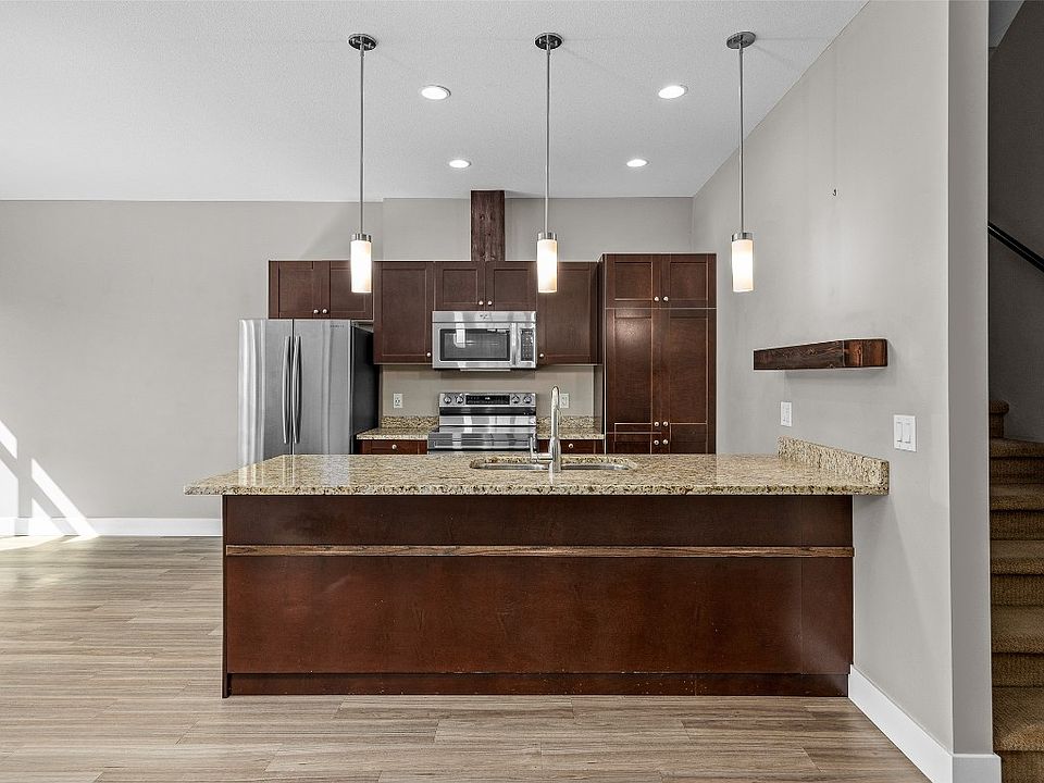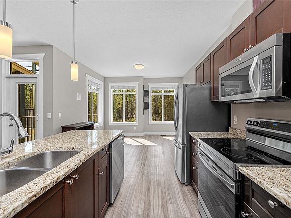 Quick Possession and Move In Ready! Located in the popular Talons community, this affordable 3-bedroom, 2-bathroom townhome (with a roughed-in 3rd bathroom downstairs!) offers a super functional 4-level split layout. It’s the perfect mix of style, space, and convenience. The main floor is bright and open, featuring a modern kitchen with stainless steel appliances, granite countertops, a large island with a double sink, perfect for meal prep or hanging out with friends - and bonus pantry storage for extra organization. The living and dining areas flow right out to a covered patio where you can kick back and enjoy! Upstairs, you’ll find a spacious bedroom and a full bathroom, while the top floor is dedicated to the primary suite, featuring plenty of closet space and a private 4-piece ensuite, offering great separation and privacy. The lower level features a spacious room that can be used as a third bedroom or flex space, with its own entrance to a covered patio and roughed-in plumbing for a third bathroom - perfect for families with kids, guests, in-laws, or a home office. Extras include central A/C, laundry room with sink, central vac, an over-length single garage, and room for two more cars in the driveway. There’s even a nice bit of green space- Pets welcome ( 2 dogs or 2 cats - any size) Just minutes from golf, beaches, wineries, restaurants, and shopping, this home makes it easy to enjoy everything the Okanagan has to offer - without breaking the bank.