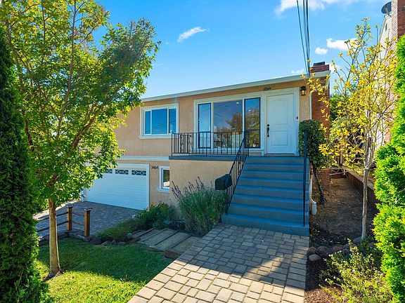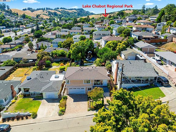 This beautifully remodeled home with scenic views offers modern comfort and natural beauty. The remodeled kitchen boasts quartz countertops, white subway tile, tile flooring, and crown molding. The bathroom has elegant tile work, a new bathtub, and natural light filtering through the window. Highlights include hardwood floors, dual-pane windows, air conditioning and fresh interior paint. The exterior features upgraded stucco, pavers, french drain, a new roof in 2022, and is sewer compliant. The lower level offers a versatile bonus space that could serve as an in-law unit, rental unit or 4th bedroom (verify with County), complete with recessed lighting, a half bathroom, and laundry room. Step outside and follow the natural stone path to a kaleidoscope of floral colors and lush greenery adorning both the front and backyards, complemented by an abundance of fruit trees, 3 varieties of grape vines, a lawn area and a play structure. The rear deck overlooks a hillside dotted with homes by day and city lights by night, creating an ideal space for relaxation and entertainment. Explore hiking/biking trails at nearby Lake Chabot Park, take advantage of exceptional Castro Valley schools and enjoy the convenience of nearby 580/880 freeways, BART, and downtown restaurants and entertainment.