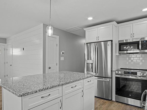 Enjoy hardwood and luxury vinyl plank flooring throughout, complemented by recessed lighting and ceiling fans that create a bright yet cozy atmosphere. The updated kitchen is the heart of the home, featuring a center island perfect for casual meals or entertaining, along with energy-efficient appliances including a dishwasher, microwave, and electric range. An open dining area makes hosting friends and family effortless.
