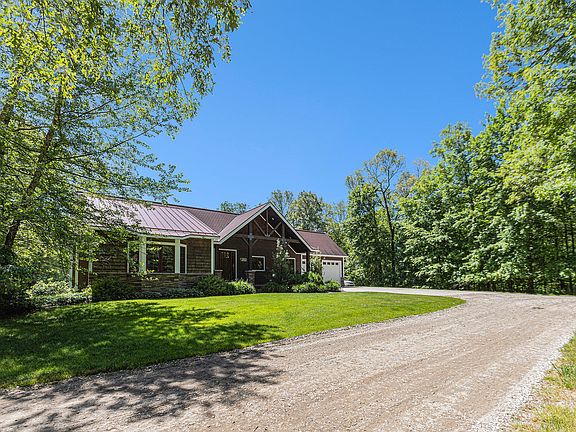 A tranquil retreat situated on over 8 wooded acres, this 4 bedroom, 3 bath home featuring vaulted ceilings, floor to ceiling fireplace, open kitchen, dining area and main bedroom walk out to a 13x32 deck with a view of the pool and yard. Lower level has a movie den, wet bar, office, workout room, built in audio, a large rec room. 3 stall heated garage with stairs to lower level, covered out door kitchen with 2 built in grills, vegetable sink, stainless steel storage and mini fridge and ample counter space, built in audio. Just steps away to a large salt water pool, surrounded by a spacious concrete patio leading to a built in fire pit, completely fenced in , with stairs to from upper deck to pool area, allowing for multi level entertaining. Pole barn, shed, log boiler, Hamilton schools. For all your hobby and storage needs a 64x56 partially heated pole barn.The insulated Pole barn has infloor heat with a hanging heater, Half bath with water heater. 4 over head doors. 10x14, 3-10x12 , Hook-up for generator to run power to house and barn. Log wood boiler provides heat to barn, house. garage and hot water to barn and house. A 22x24 shed with concrete floor. Heat pump heat and air conditioning, propane furnace, House has gas fireplace, Iron water filter and water softener. 2 water heaters, Lower level wet bar with mini fridge and custom made bar stools. Outdoor kitchen has a stainless steel mini fridge, sink, stainless steel storage. Property has a few trails that go around the property.