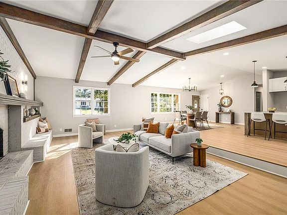 Welcome to 3465 Staci Court, a beautifully renovated mid-century ranch conveniently located in East Cobb’s highly sought-after Lassiter High School district. This home offers the ideal blend of modern design, open living spaces, and timeless character, all set on a quiet cul-de-sac street. Step inside to discover a bright, open floor plan where the brand-new chef’s kitchen features a large center island, stainless appliances, and sleek finishes that flow seamlessly into the dining area and the spacious family room. The show-stopping living space boasts soaring vaulted ceilings with exposed beams, fireplace and brick feature wall, creating the perfect setting for entertaining or relaxing by the fire. adjacent to the main living area is a versatile sunroom or home office. Enjoy outdoor living at its best on the expansive screened porch with vaulted ceilings or the new grilling deck overlooking the large, fenced backyard, ready for family gatherings, pets, and play. The main-level primary suite is a luxurious escape with an ensuite bathroom, complete with double vanities and a walk-in tiled shower. Two additional bedrooms and a beautifully updated full bath complete the main level. Downstairs, the finished basement level offers endless possibilities whether it be a recreation room, music/media lounge, or man cave, plus additional storage and access to the oversized two-car garage. This home truly has it all, style, space, and a prime East Cobb location close to parks, shopping, and top-rated schools.