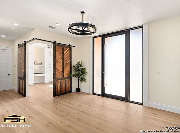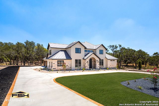 This is your chance to indulge in the custom luxury of Texas hill country living! Discover your dream home with this brand new build in the popular Belle Oaks subdivision! This house has been built on a sprawling 1.01 acres of land and showcases impressive 10-foot ceilings downstairs and a 9-foot ceiling upstairs, which gives all the rooms an airy and spacious feel. Luxury, custom chandeliers make each room a sight to behold! This stunning two-story home offers four well-appointed bedrooms and four full baths. The inviting master suite is on the first floor with double doors that leads to the gorgeous bath that features an oversized shower, mesmerizing marble bathroom flooring, walk in closet complete with storage island and custom cabinetry. Private office on the first floor with barn doors. The second story includes two bedrooms and game room with a privacy balcony. The heart of this home is the chef's kitchen, complete with a 36" dual range with option of gas or electric and butler walk in pantry. Elegant two-tone granite finish. Metal roof and insulated with spray foam for superior thermal performance. Epoxy garage floor, insulated garage doors, along with a pull-through garage door. Eco-friendly users can enjoy the EV (electric vehicle) plug inside the garage. Step outside to an intimate wooded backyard with the potential for future pool! Relax and enjoy the privacy of a greenbelt. Tempered glass windows and the laundry room door will shade itself with a click of a button. The landscaping is set to be completed early August to compliment the turn-around driveway and stain concrete edges. Come see this home today! Please check out our virtual/video tour for more!