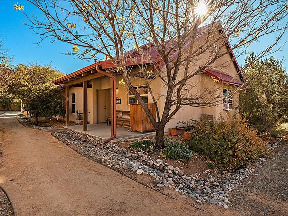 A terrific opportunity to live in a 55+ well organized, thoughtfully designed community! Sand River is quiet and peaceful and residents are committed to living in collaboration. The complex consists of 28 units along with a Community House offering a commercial kitchen, library, gathering spaces with fireplace, guest suite and laundry. These beautiful homes are situated among organic gardens to include an orchard and raised vegetable beds maintained and enjoyed by the residents. This 1082 sq. ft.* two bedroom/one bath unit is ideally situated at the rear of the community and faces an arroyo providing much privacy and open space. Among many seller upgrades are: custom built-in shelving in the living and bath areas; custom built office desk, shelving and file drawers in the guest bedroom/office; an artistic barn door to the bathroom; a beautiful outdoor patio designed by Carlotta from Paradise with three steel planter boxes, steel and amber divider screen between the neighboring unit, remote and manually controlled retractable awning, recirculating water feature, flagstone pavers, and mature shrubs, grasses and perennials on a garden drip system. This is one of the loveliest units in the community. The COA covers costs for roofing, exterior stucco and common area maintenance. Conveniently located within minutes of grocery, restaurant, retail, bank and health care facilities. Visit www.sandriver.org.