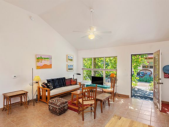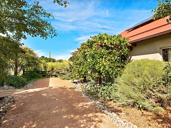 Seldom does an opportunity to live in a 55+ well-organized, thoughtfully designed community come along. Sand River is quiet and peaceful and residents are committed to living in collaboration. The complex has 28 units on-site along with a large community house offering a commercial kitchen, library, gathering spaces, laundry and a guest suite. These beautiful homes are situated among organic gardens maintained by the residents. This is a 950 sq. ft.* one bedroom, reading room/office, one bath unit with PNM Grid Tied Solar Panels on the roof. The trellis at the front portal is laden with grapevines and grapes in the summer providing welcome shade, while the side features a lovely Forsythia bush and crab apple tree. The back area has a flagstone patio, raised rock-edged bed and a lush Golden Rain Tree creating lots of summer shade. Lovingly cared for with a single owner, there are many seller upgrades. The COA covers costs for roofing, exterior stucco and common area maintenance. Conveniently located within minutes of grocery, restaurant, retail bank and health care facilities. Visit www.sandriver.org