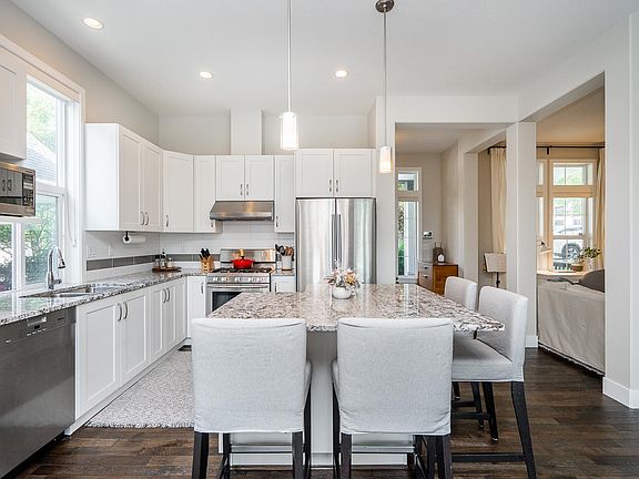 Beautiful Burke Mountain, Foxridge built home offering 5 beds, 4 baths, and 3,004 sq ft of bright living space! The main floor is airy and spacious with oversized windows that stream in natural light. The kitchen has an island, shaker style cabinetry, pantry and leads to a generous dining and living area w/gas FP. French doors open to a covered South facing balcony. Office and powder complete the main. Up are 3 large beds all having WIC’s + laundry up for convenience. The primary has 11’ vaulted ceilings, private balcony and 5 piece ensuite. Lower level has a large rec room, additional 2 beds + full bath. Walkout to a private, fenced backyard w/extended patio. Air conditioning, 3 parking including double garage + EV charger. Located walking distance to Ibex Café, parks, trails and transit.