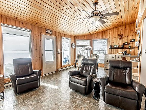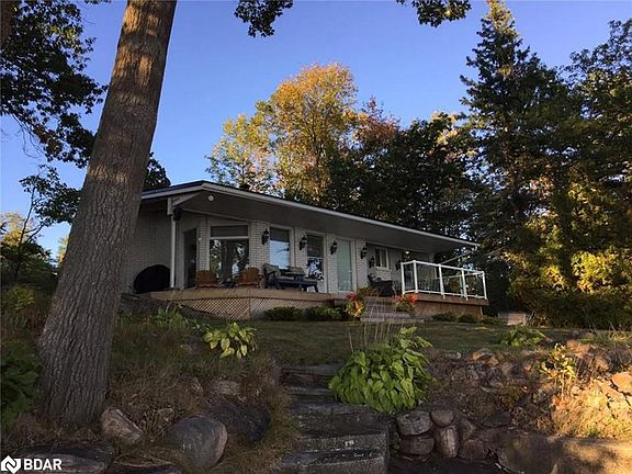 YOUR YEAR-ROUND WATERFRONT PLAYGROUND AWAITS - ADVENTURE, RELAXATION, & STUNNING SUNSETS! Live the ultimate waterfront lifestyle on stunning Lake Couchiching, part of the Trent–Severn Waterway, offering year-round adventures and unbeatable views! Nestled on a private 100 x 206 ft lot with towering trees for privacy, this 4-bedroom, 2-bathroom raised bungalow boasts 100 ft of south-facing shoreline with clear, sandy-bottom waters, perfect for swimming, fishing, and boating. Relax on the spacious deck with glass railings, where vibrant orange and pink sunsets paint the night sky. A concrete break wall and seasonal dock provide easy access to endless water activities. Winter brings excitement with ice fishing, skating, and skiing on nearby trails, while summer days are made for boating, BBQs, and floating on the water. Enjoy an open-concept kitchen, dining, and living area with panoramic lake views, plus a cozy wood stove for those chilly nights. Modern comforts include municipal water, sewer, garbage pickup, and high-speed internet, making this four-season home or cottage perfect for remote work. An attached 1-car garage and driveway parking for 8+ vehicles provide ample space for guests. Just a short drive to Orillia for shopping, amenities, with convenient grocery delivery services available. This exceptional waterfront #HomeToStay offers everything you need for year-round living, endless outdoor adventures, and unforgettable moments by the lake!