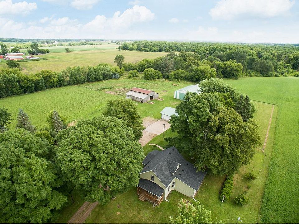 A little slice of E-I-E-I-O ! Pastoral setting on 19+/- Acres-the calm and quiet of country living yet only 45 minutes to the Twin Cities!Watch the sunsets while rocking on the front porch-New roof-new on demand boiler hot water system-Great 2 car garage with additional heated workshop-40 x 60 Pole Building (dirt floor)-machine shed - electric fenced areas for goats - Large kitchen - large dining room - office with french door - charm and convenience all under one roof! Enjoy the virtual tour!