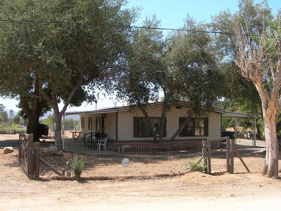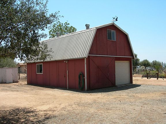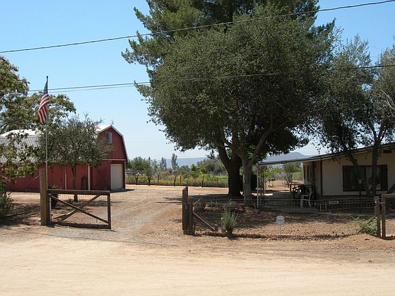 Own your land with a manufactured home and beautiful red barn. The barn has a workshop, carpeted loft, 1-car garage with opener, 220, air compressor, etc. including water and electricity. Property has a new fence costing $8000. The shed houses a riding lawn mower and push mower ready for the new owners. The home needs some updating but has a good floor plan, central air, inside laundry and attached carport. You get a nice view of the mountains from the property. The property is close to the 15 and 215 freeways. Low taxes, no HOA, and special taxes are only $41.32 per YEAR.