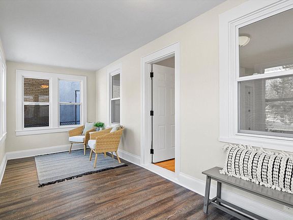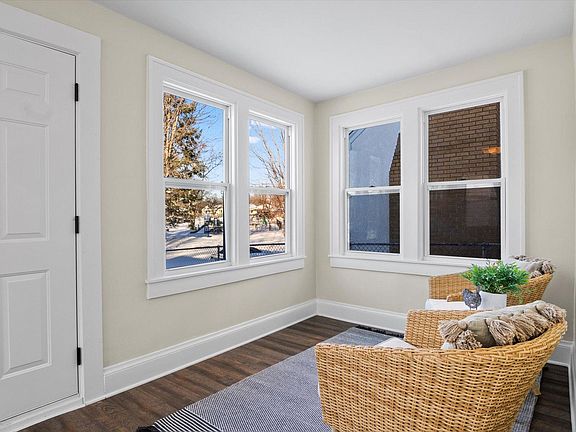 Welcome to your new home! Beautiful landscaping in the front welcomes you home and guests inside. Front porch entry is a welcoming space and is the first stop in your beautifully renovated home! The interior boasts refinished hardwood floors and fresh paint, creating a bright and inviting atmosphere. On the main floor, you’ll find brand-new vinyl windows, the first large bedroom and a fully remodeled bathroom. The eat-in kitchen has been updated with granite countertops, stainless steel appliances, and a stylish tile backsplash while still keeping the charm of the original home. Ample kitchen storage helps you stay organized!