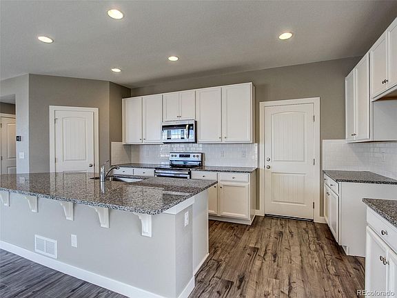 Beautiful two story with 3 BR, 2.5 bath with nice loft/flex space is popular Kittredge model/floor plan by KB Homes in Siena in Castle Rock and in like new condition! Enjoy this terrific Energy Star home on a sun-filled, east facing corner lot with an extended 2 car garage. Kitchen includes all appliances (refrigerator included but not pictured) and a large granite island overlooking the great room. Master bedroom has two walk-in closets! Enjoy luxury vinyl flooring throughout the main level, plus stylish cabinetry, lighting, and hardware. This home includes blinds, air-conditioning, nice front yard and a covered patio with rocked perimeter in back, plus a partial unfinished basement for your storage needs! Terrific location is commuter friendly with easy access to highways, shopping, dining, and outdoor recreation including walking/biking/hiking trails. Landscaping is complete although not shown in pictures. Will consider one small/medium sized dog; yard is not fenced. No cats allowed. Minimum credit score of 700 for non-subsidized housing applicants. One year lease or short term lease negotiable depending on start/end dates.