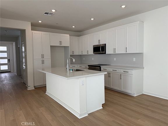 This beautiful 2-story home features a California Modern exterior style. The Peri Plan 1 floorplan includes 3 bedrooms, a den/office, loft and 2- Car Garage. The downstairs powder room has been upgraded to be a full 3rd bath. This home includes beautiful upgraded features such as a quartz countertops with full splash in the kitchen, sink in the laundry room, single basin stainless steel sink and electrical package. You will also enjoy a Samsung 30” smart freestanding induction range, Samsung over-the-range microwave and Samsung dishwasher in stainless steel all included. Upgraded luxury vinyl plank flooring on the main floor, tile in the bathrooms and laundry and the remainder in carpet finish off this stunning home! The community offers a contemporary amenity space with a pool, jacuzzi, dog park, barbeques, fire pits and playground. Peri plan 1 is waiting for you! Home ready for move-in.