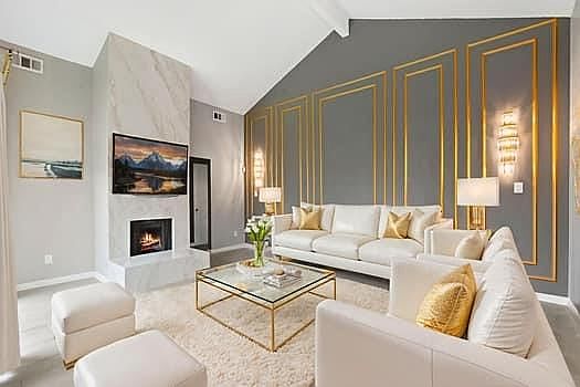 Modern tile flooringStylish farmhouse sinkBrand new cabinetsDesigner wall sconcesFully renovated kitchenBeautifully landscaped yardElegant light fixtures