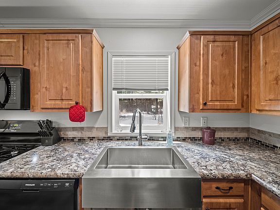 Charming 2020 home situated in the serene ''Mountain Cabin Sites Subdivision'' of Shingletown! The welcoming and covered front porch leads to the open and efficient living area complete with crown molding, recessed lighting, and a comfortable wood burning stove! The updated kitchen boast quality features including solid countertops, custom tile backsplash, and a stainless sink! Spacious 1.8 acres to enjoy!! Must See!