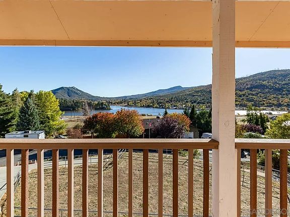 This beautifully maintained, high-quality home offers breathtaking views of Cuyamaca Lake. From the comfort of your own living space, you can enjoy the daily sights of boating and fishing on the lake, with the sunlight glistening off the water. During winter, picturesque weather rolls in across the nearby mountain tops, adding to the home's unique charm. The home is meticulously built with numerous special features. Enhanced insulation throughout the dwelling ensures that forced air heating and A/C are rarely needed. Instead, an efficient freestanding woodstove keeps the house warm during colder days. Large picture windows flood the home with natural light and highlight the scenic surroundings. The main floor boasts elegant porcelain tile flooring, while lighted ceiling fans are installed throughout the house for added comfort. The kitchen is equipped with attractive granite countertops. The spacious primary bedroom is designed for comfort and relaxation, featuring sliding doors that lead out to a private deck. From this deck, you can enjoy stunning views of the lake, making it an ideal spot to unwind and take in the natural beauty surrounding the home. Adding to the sense of luxury, the primary bath includes a spa tub perfect for soaking and relaxing after a long day. The large two-car garage not only offers ample parking but also provides additional storage space. For horse enthusiasts, the property is set up with pipe corrals and a turnout area. The home is accessible via a county-maintained road, ensuring easy and reliable access year-round.